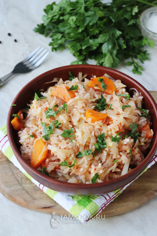 Спустя 15-20 минут разложить классическое лаханоризо по-гречески по порционным тарелкам, посыпать измельчённой зеленью и в горячем виде подать на стол.