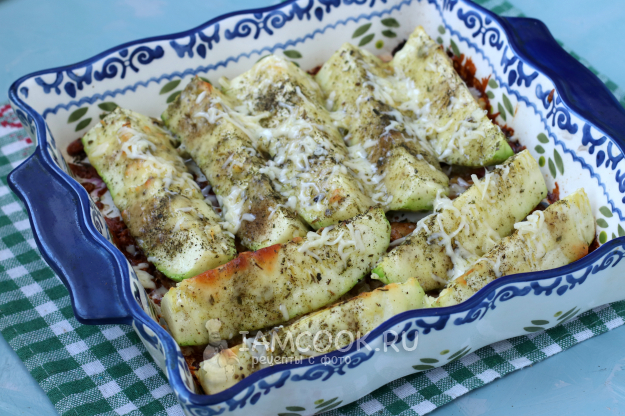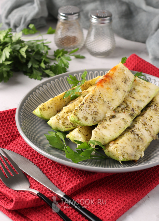 Запекать кабачки с сыром сулугуни в духовке, разогретой до 180 градусов, 20 минут. Если в вашей духовке есть гриль, то в конце запекания его можно включить на 2-3 минуты, чтобы сыр хорошо зарумянился.