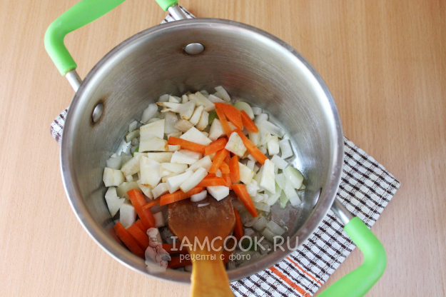 Припустите овощи до мягкости на подсолнечном масле в другой кастрюле или на сковороде.