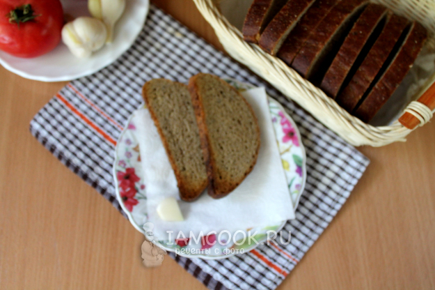 Отдельно приготовьте гренки: в тостере или на сковороде подрумяньте ломтики хлеба и натрите их чесноком - такая подача добавляет пикантную нотку этому довольно простому блюду.
