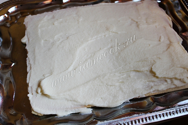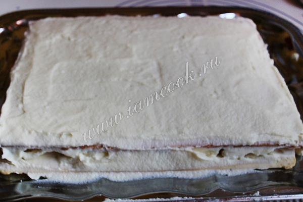 Складываем коржи с кремом друг на друга. Оставляем на столе примерно 3-4 часа.