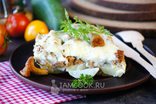 Вкусная, ароматная картофельная запеканка с лисичками готова.