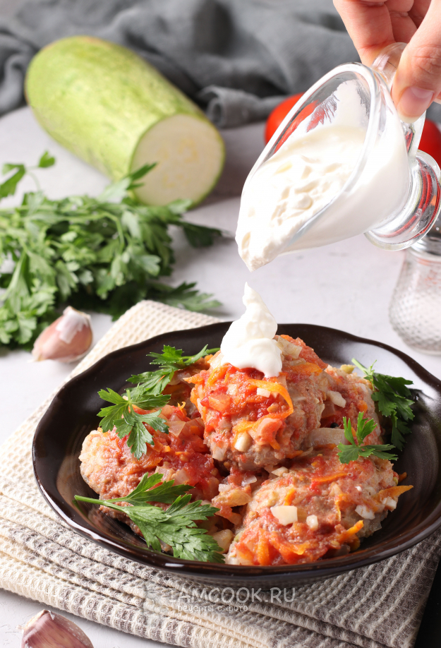 Вкуснейшие ленивые голубцы с кабачками и фаршем подать в тарелке, посыпав свежей петрушкой или укропом. Также очень вкусно подать к ленивым голубцам сметанку.