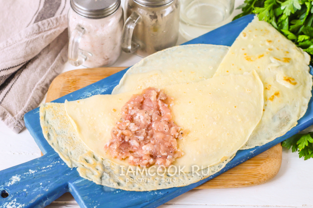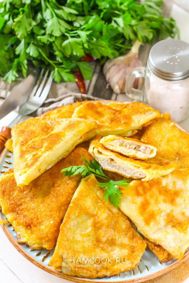 У нас просто фарш обжаривают и готовят блины с мясом)))