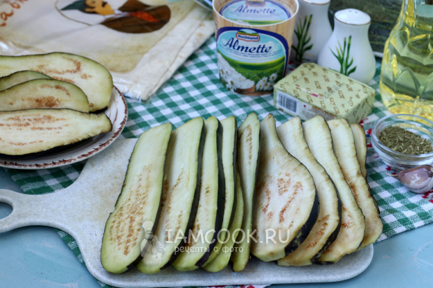Подготовить ингредиенты для рулета из лаваша с баклажанами. Если использовать только творожный сыр, то его нужно взять 250-300 г.