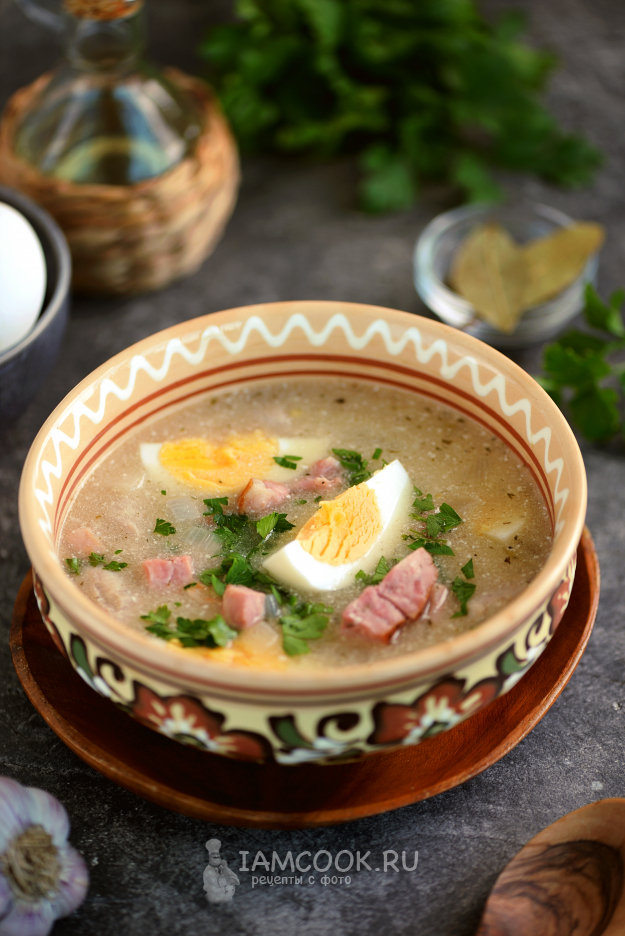Вкуснейший, очень сытный и ароматный польский суп журек готов. Можно звать домашних к обеденному столу и подавать суп с любимым хлебушком.