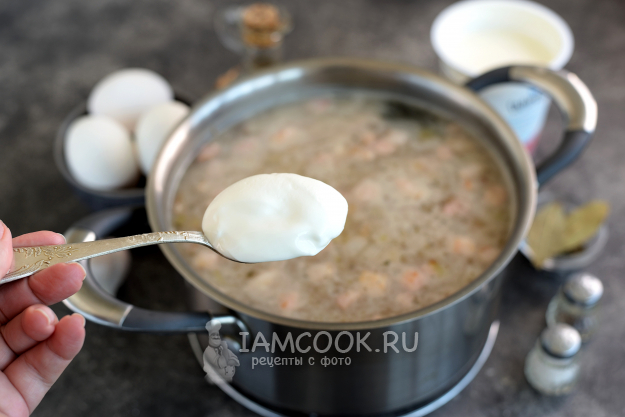 Добавьте в суп сметану хорошего качества, активно помешивайте, чтобы она не свернулась. Теперь можно посолить и поперчить по вкусу, собрать с поверхности пену. Обязательно дайте супу настояться перед подачей: чем дольше он постоит, тем вкуснее будет. Особенно журек хорош на следующий день.