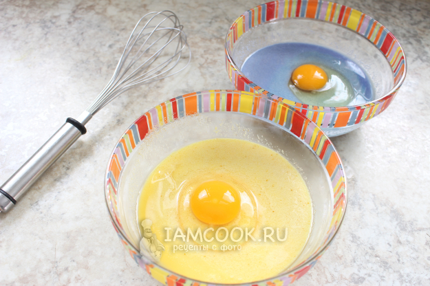 По истечении 30 минут добавляем в каждую миски по яйцу.