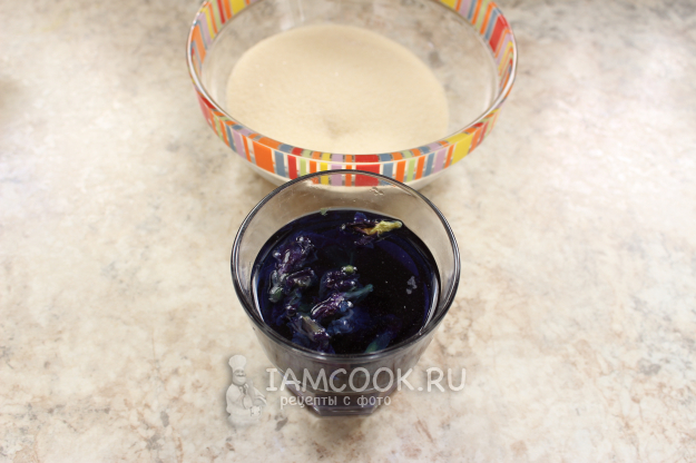 Далее завариваем синий чай анчан: 5 лепестков чая заливаем кипятком, даем настояться 5-7 минут.
