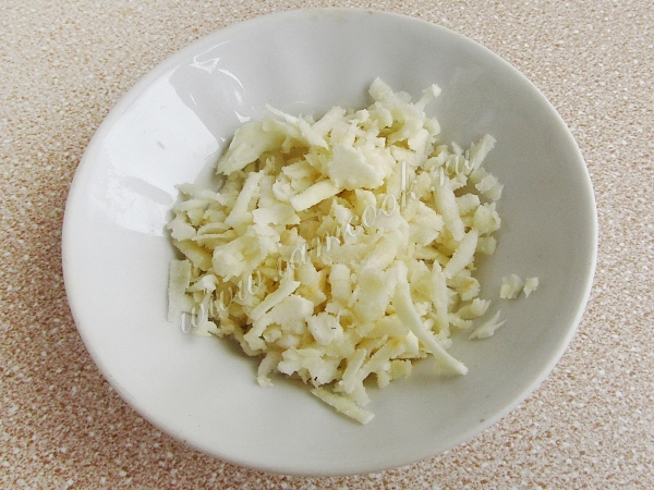 Оставшийся корень петрушки очистить и натереть на крупной тёрке или нарезать соломкой.