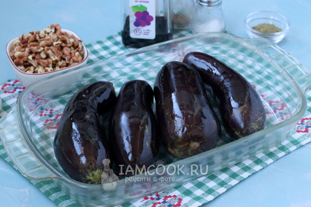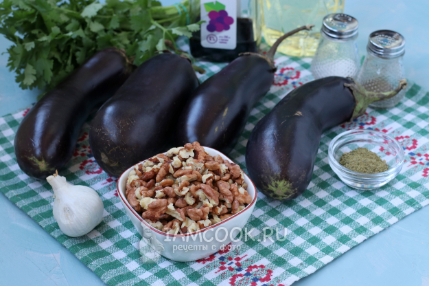 Для приготовления пхали из баклажанов по-грузински подготовить из списка необходимые ингредиенты.