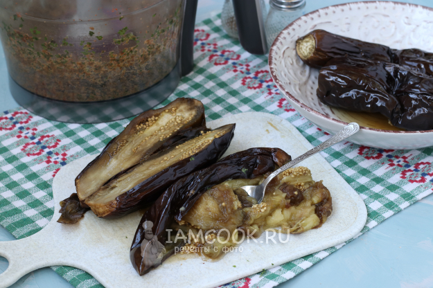Готовые баклажаны переложить в тарелку, накрыть крышкой и дать остыть.