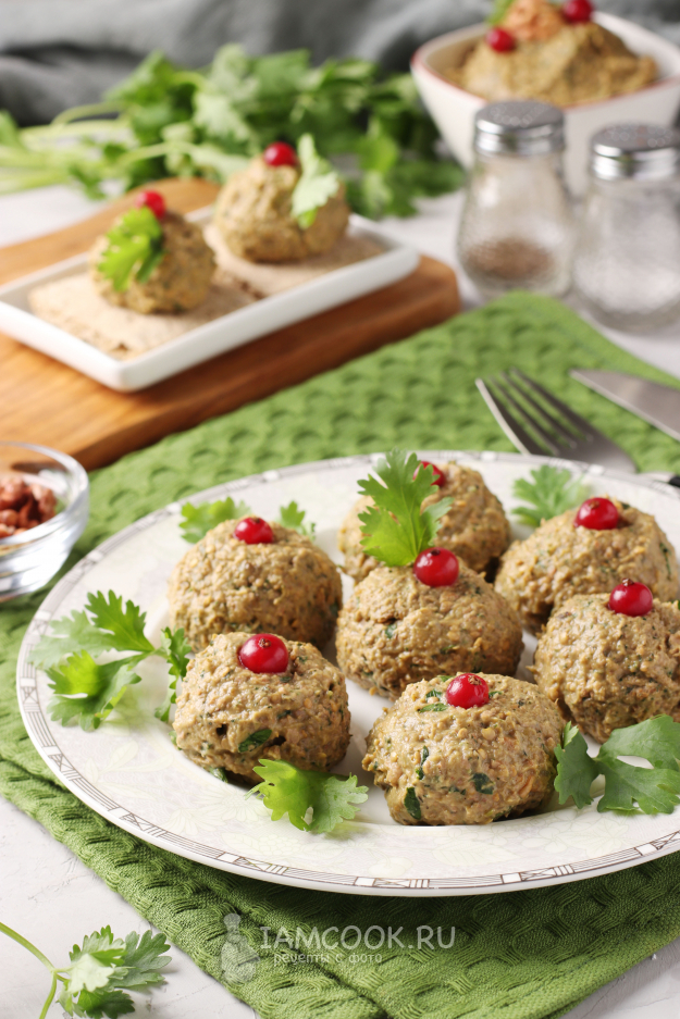 Из полученной массы скатать шарики и убрать в холодильник, чтобы закуска настоялась. Считается, что вкус пхали из баклажанов (да и других вариаций) особенно проявляется после охлаждения. Шарики украсить ягодами и подать к столу.