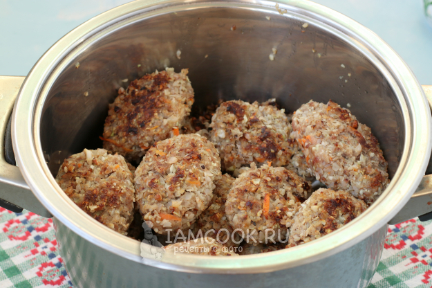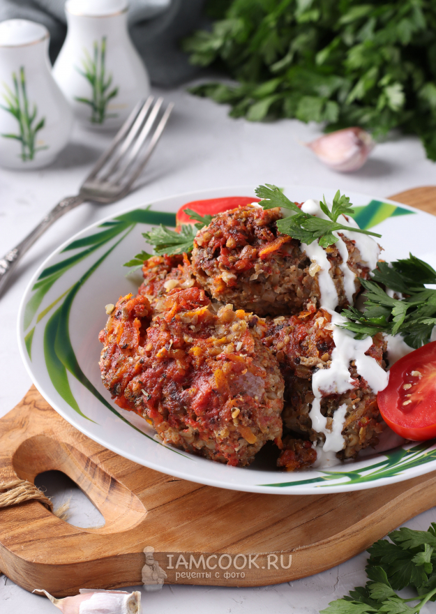 Кастрюлю накрыть крышкой и довести содержимое до кипения. Затем убавить огонь и готовить 30-35 минут. Ленивые голубцы с гречкой готовы!