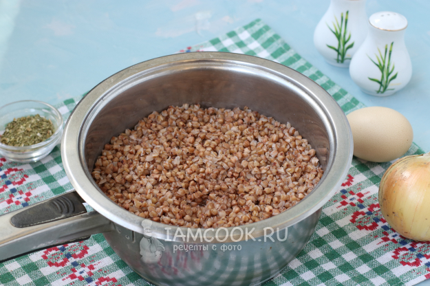 Гречку промыть и сварить до готовности. Дать ей остыть.