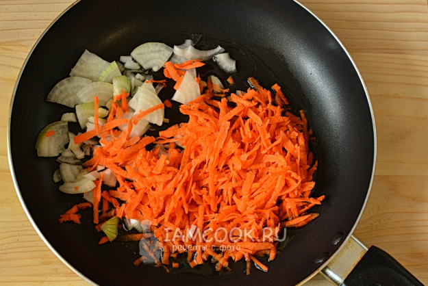 Выложим морковь и лук на сковороду с подсолнечным маслом.