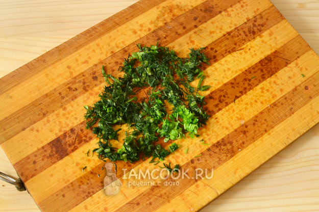 По желанию можно добавить в суп зелень, это никогда не повредит. У меня сегодня - замороженный укроп и свежая петрушка. Нарежем мелко.
