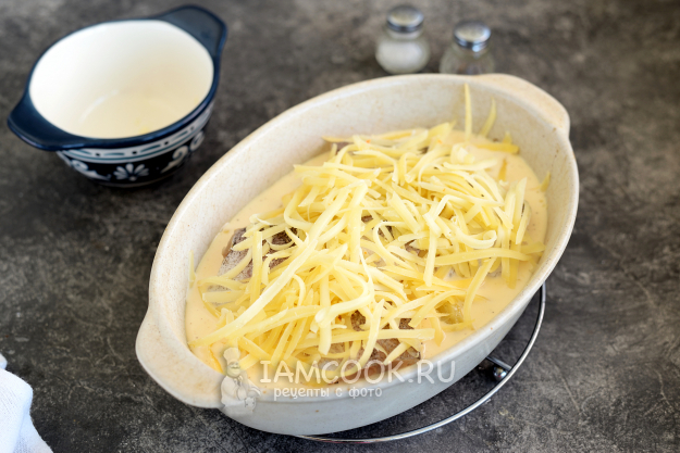 Посыпьте все щедрым слоем натертого твердого сыра. Верните форму в духовку еще минут на 20-25.