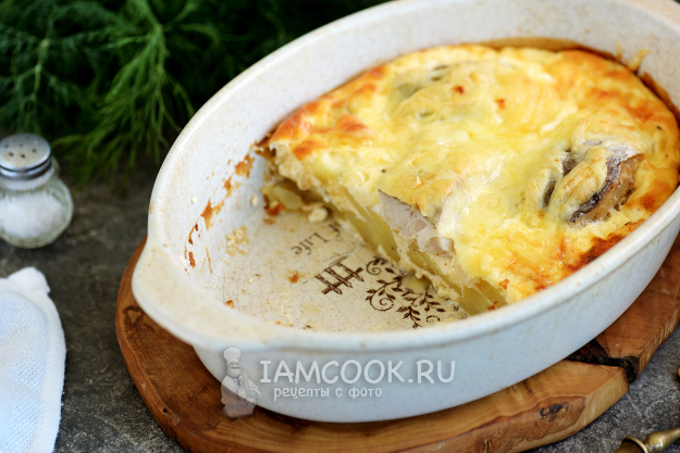 Рыба по-французски с картошкой готова, можно подавать к столу.