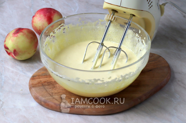 С помощью миксера взбейте массу до пышного светлого состояния.