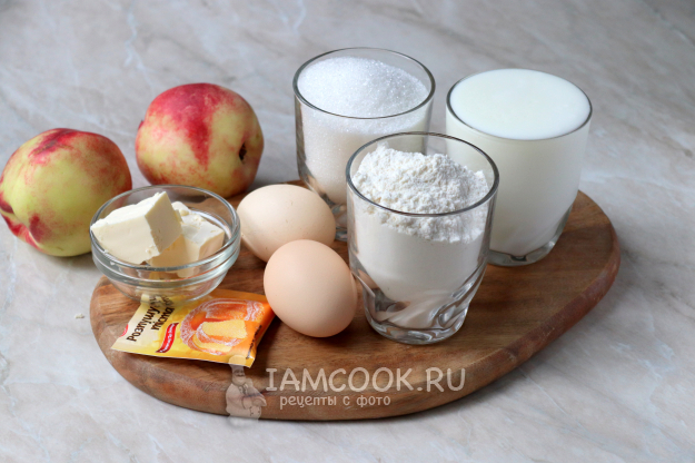 Для приготовления кекса с нектаринами необходимо подготовить следующие ингредиенты. Сливочное масло должно быть мягким, поэтому заранее выложите его из холодильника. Пшеничную муку просейте через мелкое сито, чтобы насытить её кислородом, а кефир подогрейте до тёплого состояния. Нектарины помойте.