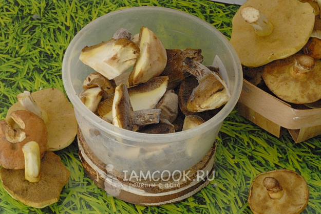 Никаких других ингредиентов, кроме грибов, для заморозки маслят на зиму нам не понадобится.