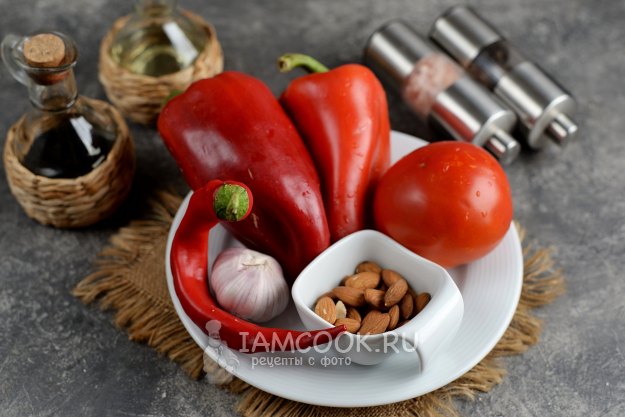 Для приготовления испанского соуса Ромеско нам понадобятся спелые крупные красные болгарские перцы, а также помидор сладких сортов. Овощи помойте и слегка обсушите.