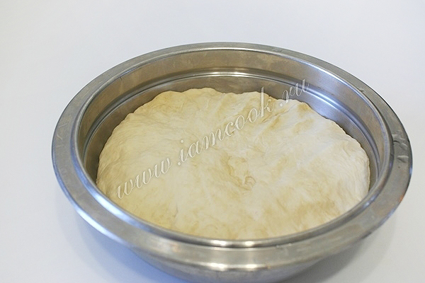 Переложите тесто в глубокую миску, накройте тесто тканью и оставьте подходить на 1 час.