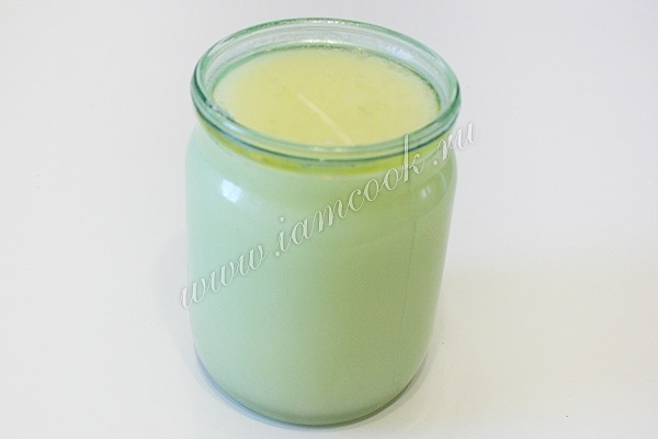 Сыворотку подогрейте. Она должна быть теплой, примерно 40°С. Растворить в сыворотке сахар и соль. Влить в неё растительное масло.