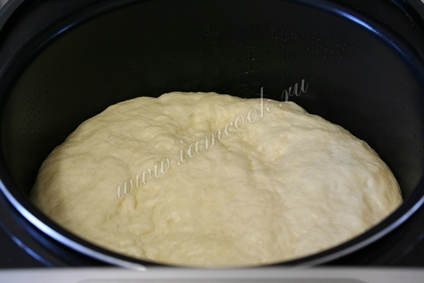Обомните его и переложите в смазанную растительным маслом чашу мультиварки. Хорошо разровняйте его руками. Включите программу «Йогурт» и оставьте тесто подходить еще на 40 минут.