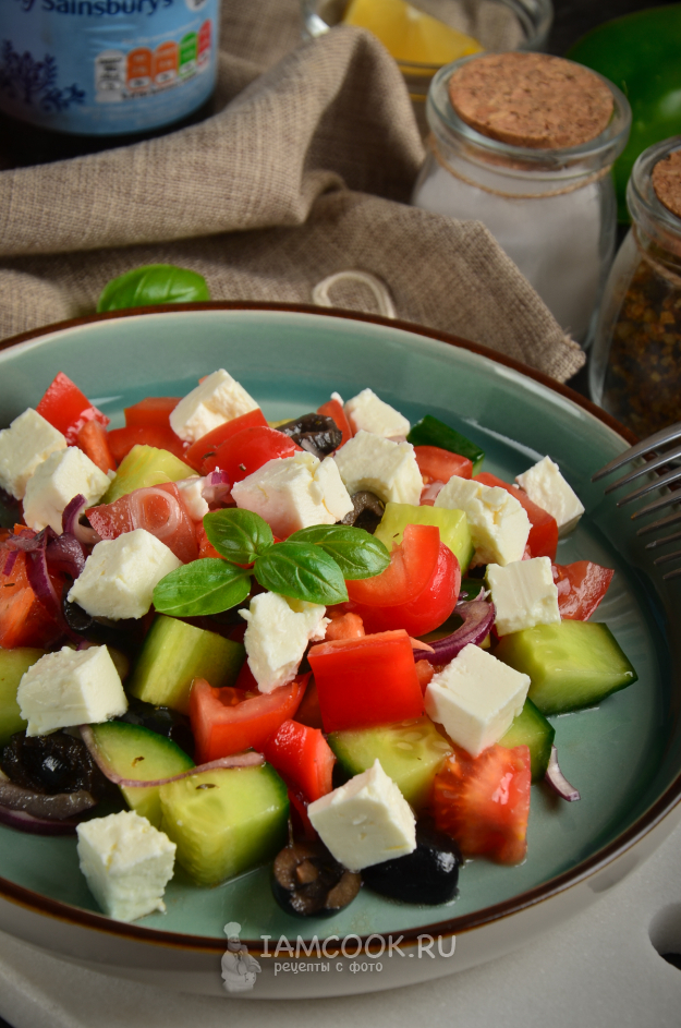 Классический греческий салат с фетаксой готов. Подавайте сразу же. Приятного аппетита!