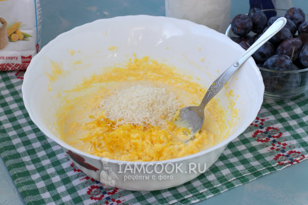 Добавить в смесь лимонную цедру и кокосовую стружку.