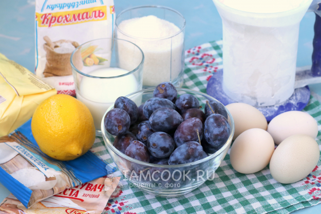 Для приготовления сливового пирога с меренгой подготовить из списка необходимые ингредиенты.