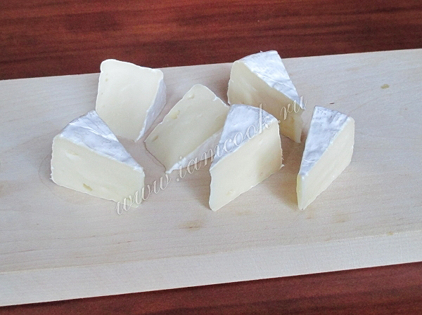 Сыр с белой плесенью (Бри и т.п.) нарежьте на треугольнички.