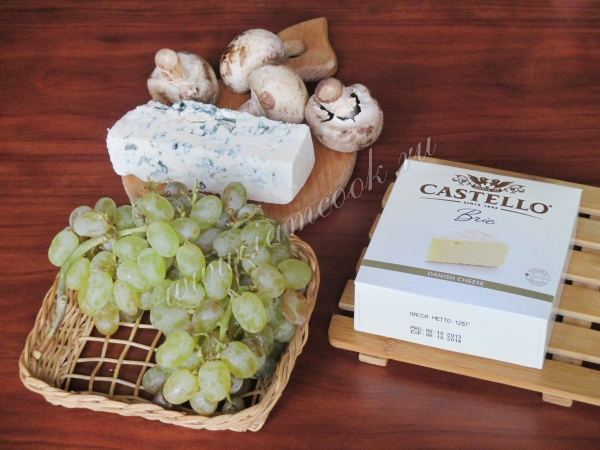 Закуска из сыров с плесенью с виноградом и с шампиньонами готова.