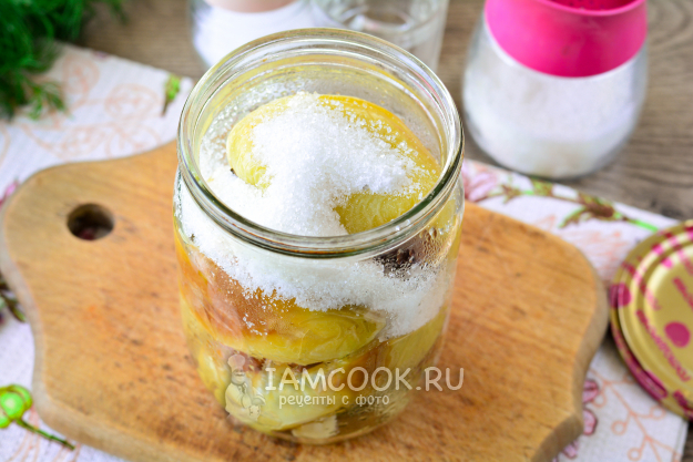 Подготовьте банки для закатки: хорошо промойте их с содой, несколько раз сполосните, затем пропарьте 2-3 минуты - для 0,5 л банок этого будет достаточно. Я обычно стерилизую банки над паром - ставлю специальное кольцо на кастрюлю с кипящей водой и стерилизую банки нужное время. Вы же можете простерилизовать банки в духовке - кому как удобно. Подготовленные банки остудите.