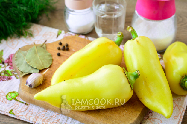 Подготовьте ингредиенты для заготовки маринованного запеченного в духовке болгарского перца на зиму в банках.
