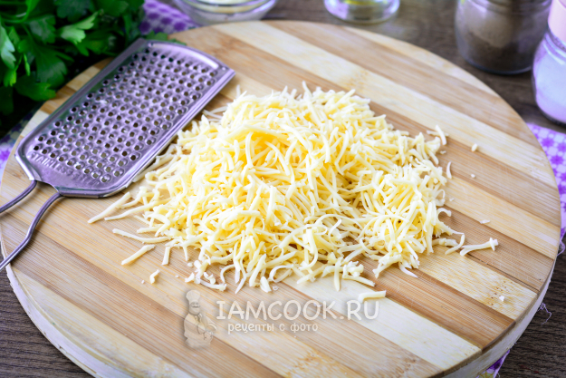 Твердый сыр натрите на средней терке.