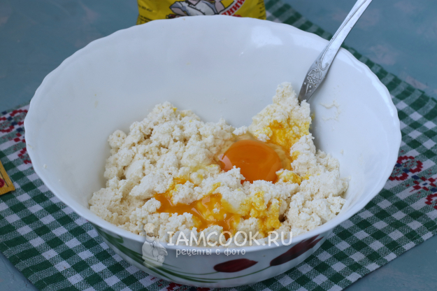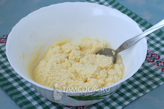 Далее добавить сахар, ванилин и крахмал, всю массу тщательно перемешать. Если хотите совсем однородную массу, то взбейте смесь блендером.
