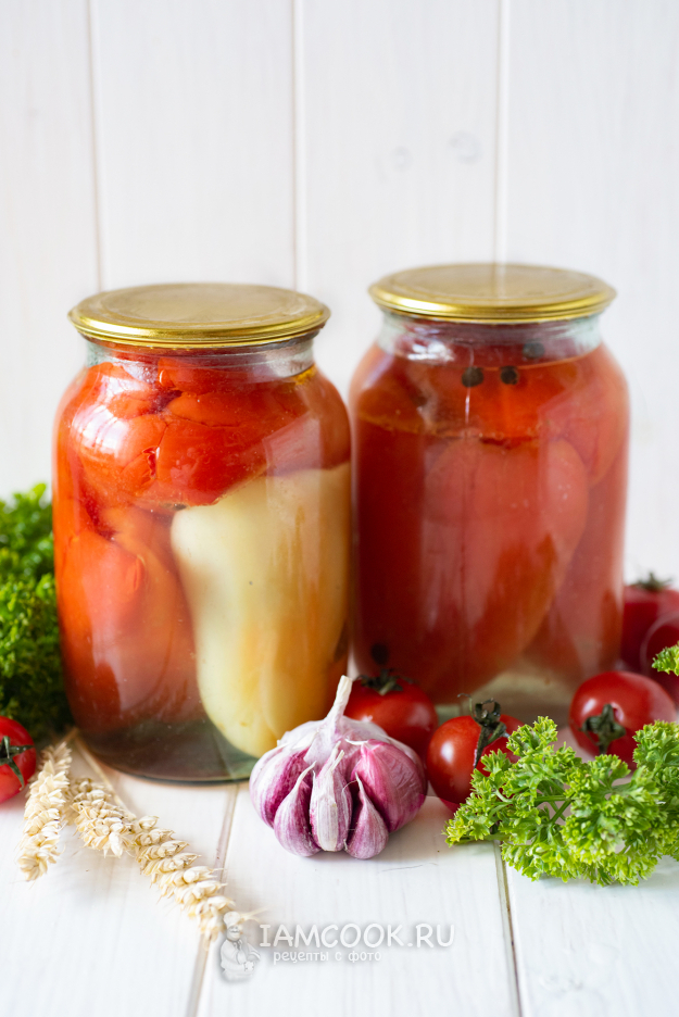 На следующий день заготовленные на зиму банки с перцами, фаршированными помидорами и чесноком, можно отправлять на хранение.
