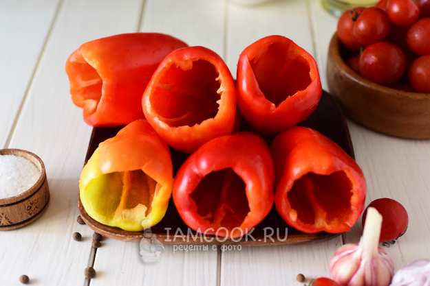 У каждого перца очень аккуратно острым ножом вырезать хвостик и семенной отдел.