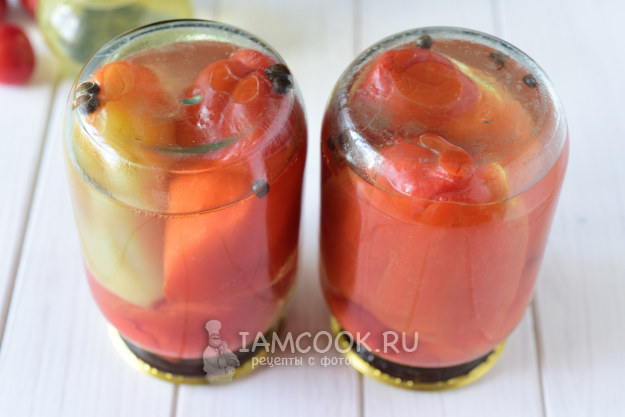 Залить перцы маринадом по плечики банок, прикрыть крышками.