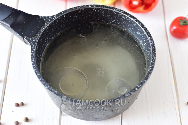 В кастрюле довести до кипения 1-1,5 литра воды. Опустить перцы в кипящую воду и через две минуты их извлечь из кипятка. Перцы можно опускать в горячую воду партиями.