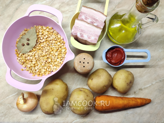 Подготовьте ингредиенты для приготовления горохового супа в мультиварке-скороварке. Ещё раз обращаю ваше внимание: обязательно переберите горох от мусора и тщательно промойте его в дуршлаге под проточной водой до прозрачного смыва.