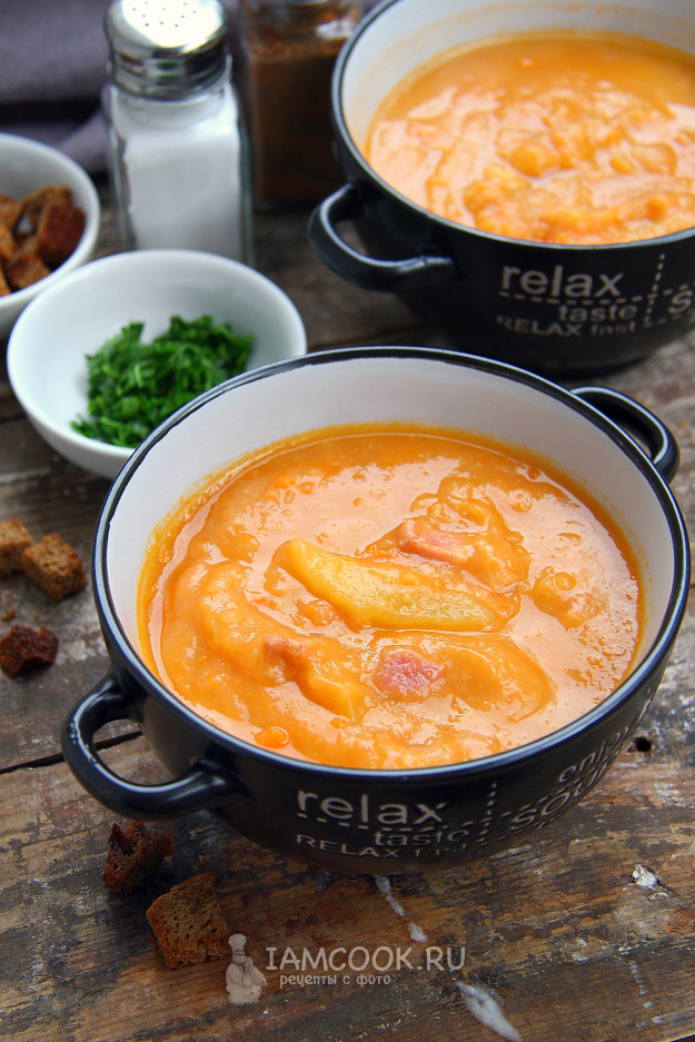 После того как суп готов, посолите его по вкусу. Подавайте горячим. С гороховым супом идеально сочетаются ржаные сухарики и свежая зелень. Приятного аппетита!