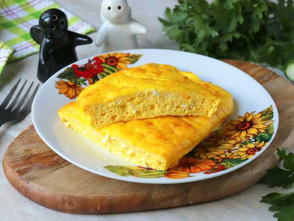 Влить подготовленную омлетную смесь в ту же сковороду, в которой жарили овощи. Готовить омлет с морковью и луком под крышкой 3-4 минуты. Готовый омлет разложить по тарелкам и сразу подавать к столу. Надеюсь, вам понравился этот простой и вкусный рецепт.