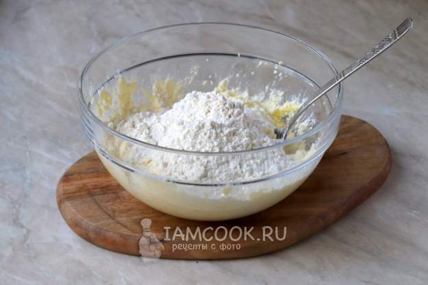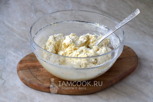 Тщательно перемешайте, чтобы не осталось сухой муки. По консистенции тесто должно получиться липким, но при этом достаточно густым.