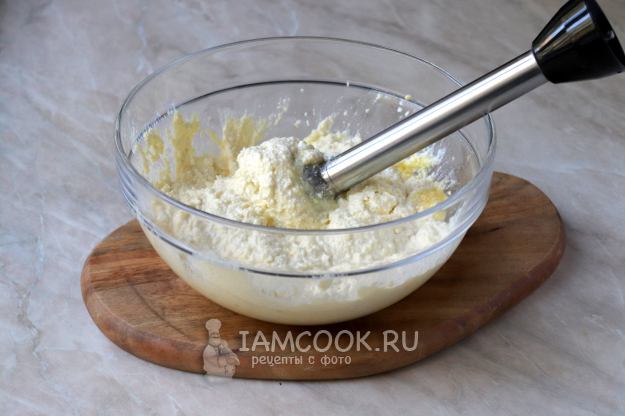 С помощью погружного блендера взбейте массу до однородного состояния.
