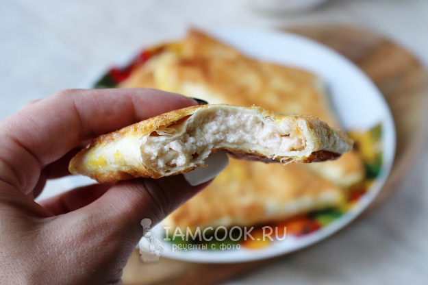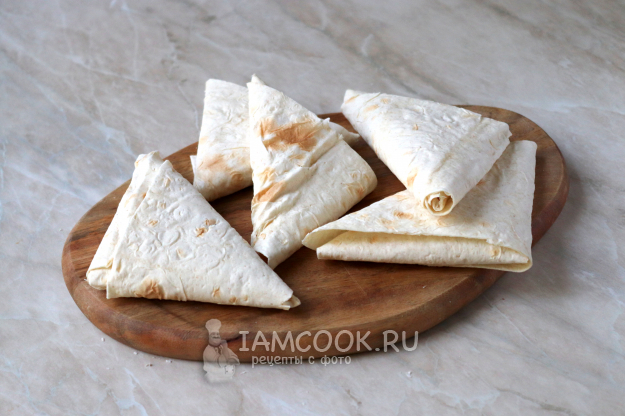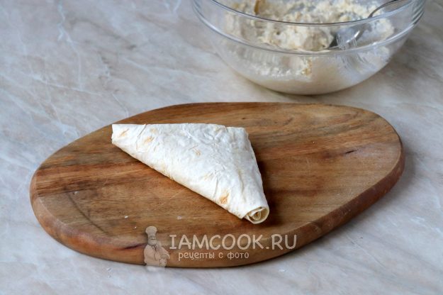 Сверните лаваш треугольником так, чтобы творог оказался внутри и не было открытых отверстий.