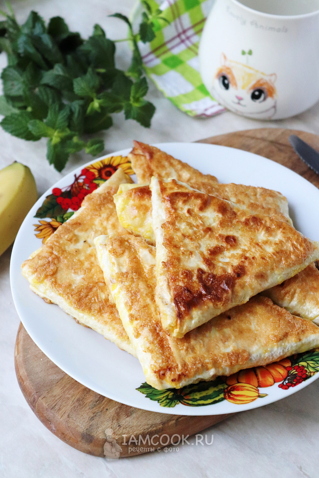 Конвертики из лаваша с творогом и бананом можно подавать к столу.